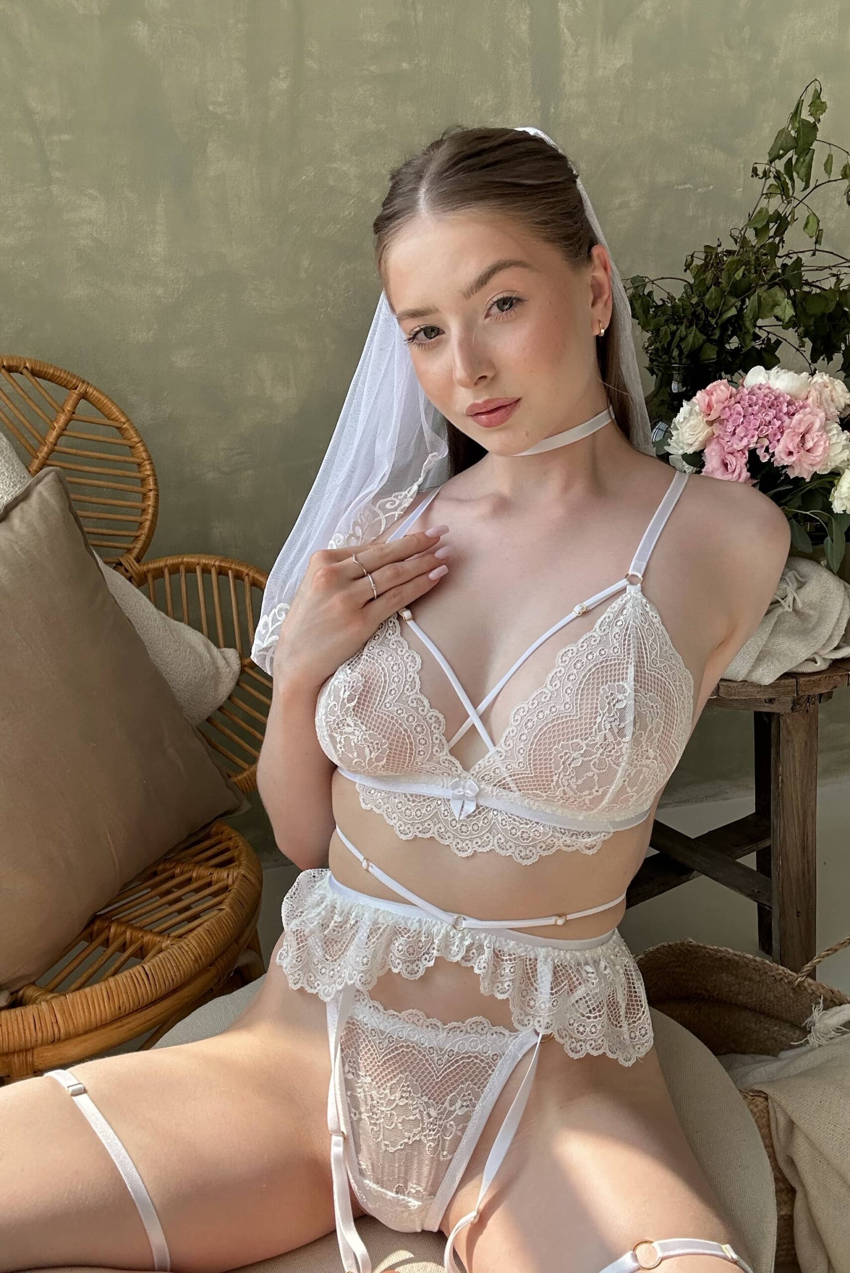 Uszyliśmy dla niej biustonosz 65C + majtki S + pas S + podwiązki M.