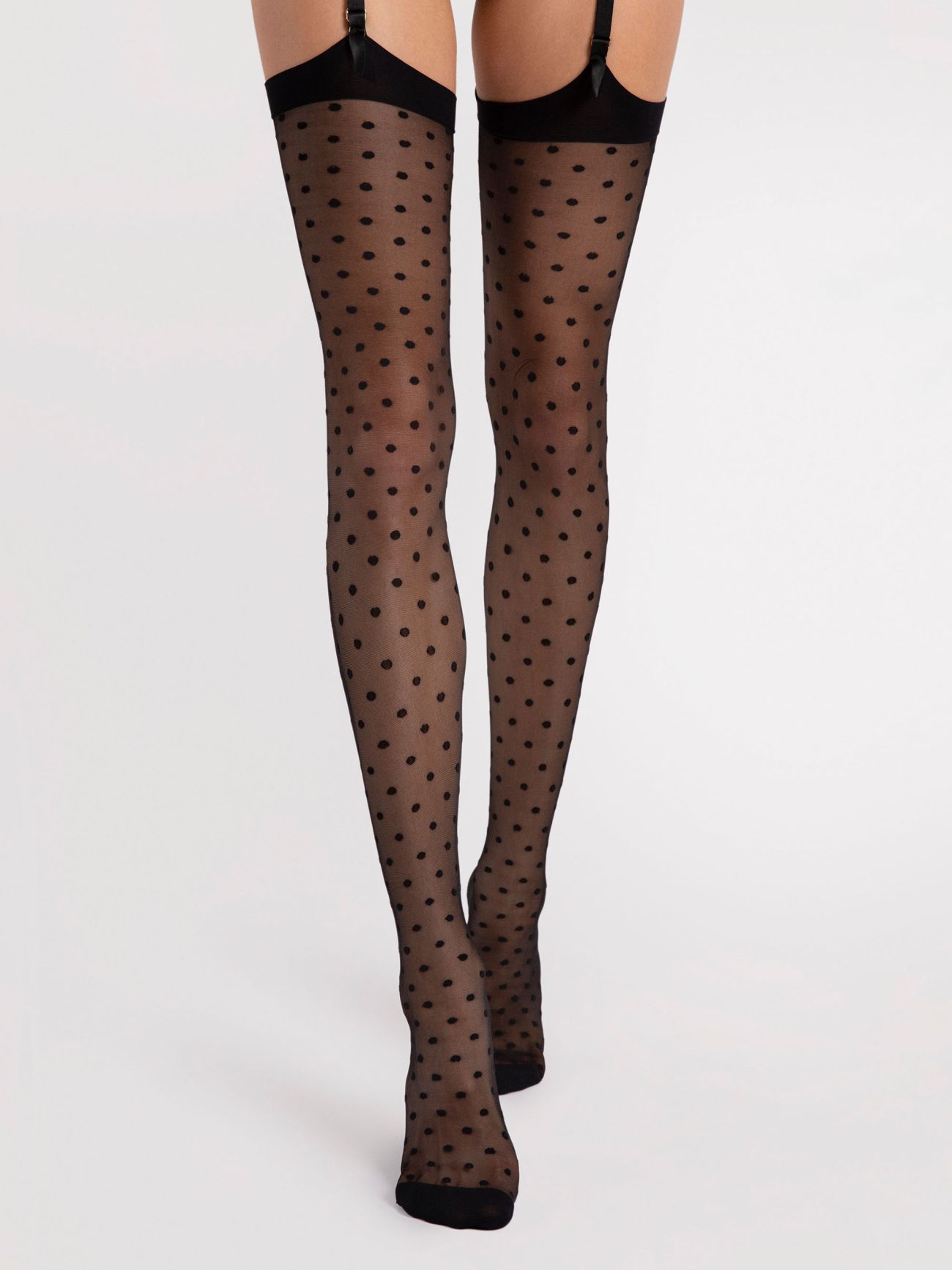 Pończochy Louise to esencja retro elegancji zaprojektowana dla kobiet, które kochają klasyczne detale i pragną poczuć się pewne siebie. Wyrazisty wzór kropek w połączeniu z wyrafinowanym wykończeniem nawiązuje do stylu minionych dekad, nadając pończochom ponadczasowy, romantyczny charakter. Retro pończochy są hołdem dla tradycyjnego szyku, jednocześnie wpisując się w nowoczesne trendy uwodzicielskiego designu.